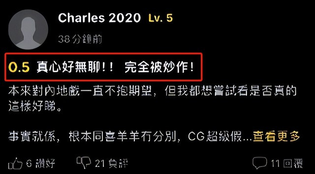 不光在网站打出0.5 的低分,甚至有香港观众直言:无聊的中途想走!